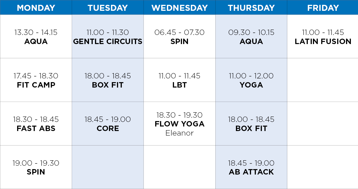 Please note that whilst aqua aerobics is taking place only class attendees can use the pool.