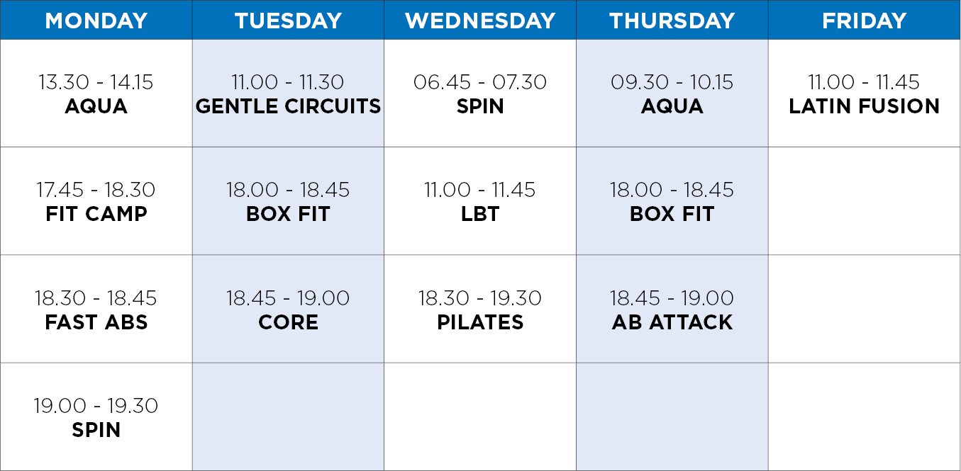 Please note that whilst aqua aerobics is taking place only class attendees can use the pool.